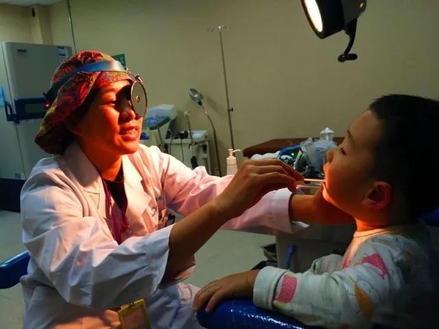 劉玉欣給患兒做術(shù)前檢查