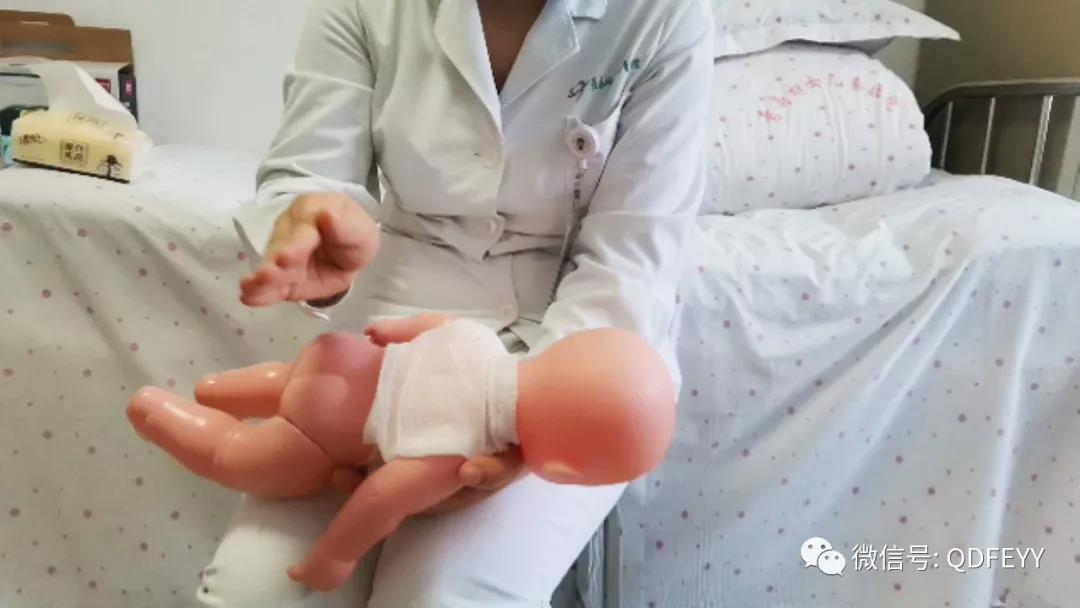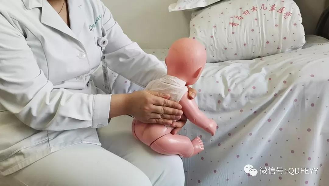 (3)把嬰兒放在媽媽的大腿上,然后輕輕拍打嬰兒后背。