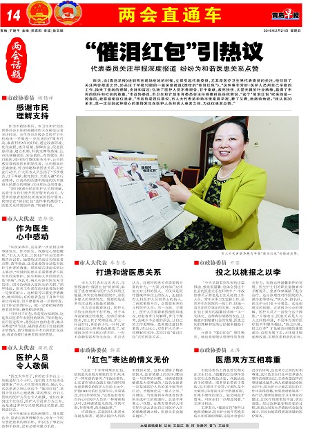 青島早報:“催淚紅包”引熱議:代表委員關(guān)注早報深度報道 紛紛為和諧醫(yī)患關(guān)系點贊