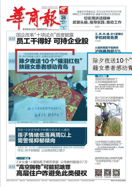 華商報:除夕夜送10個“催淚紅包”陜籍女患者感動青島