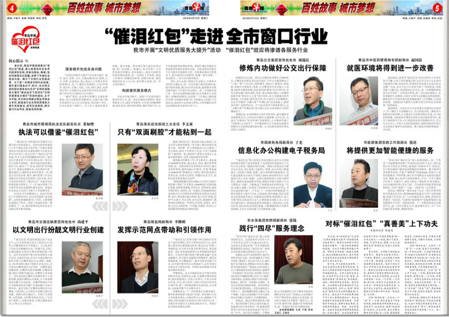 青島早報:“催淚紅包”走進全市窗口行業(yè)