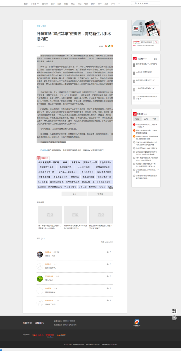 齊魯壹點:肝脾胃腸“鳩占鵲巢”進(jìn)胸腔,青島新生兒手術(shù)挪內(nèi)臟