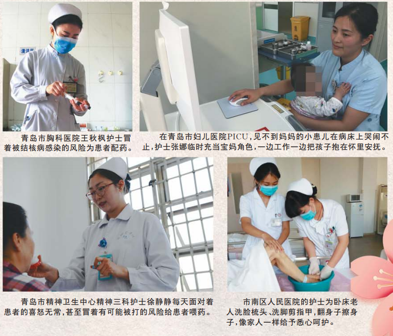 5月12日是第107個(gè)國(guó)際護(hù)士節(jié),從呱呱墜地、生病護(hù)理、養(yǎng)老護(hù)理、直至最后的臨終關(guān)懷……南丁格爾之燈,幾乎光照你我的一生。在青島各大公立醫(yī)院的不同科室里,護(hù)理的感人瞬間頻頻上演。哺乳期護(hù)士替手術(shù)患者喂孩子,解燃眉之急;病房護(hù)士為臥床老人洗腳梳頭擦身子,保持干凈;精神科護(hù)士幫住院患者喂飯剪指甲,照料起居;臨終關(guān)懷護(hù)士緊握病重患者的手,陪伴其度過生命的最后時(shí)刻……在他們眼里,這些都是分內(nèi)之事,平凡之舉;在我們看來(lái),卻如春風(fēng)化雨,暖透心田。