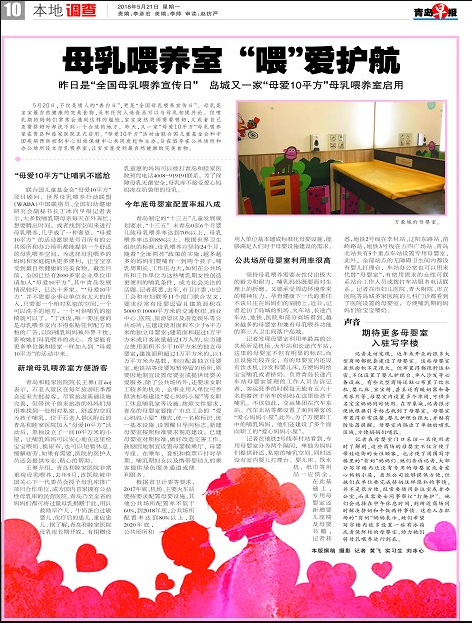 青島早報:母乳喂養(yǎng)室“喂”愛護航