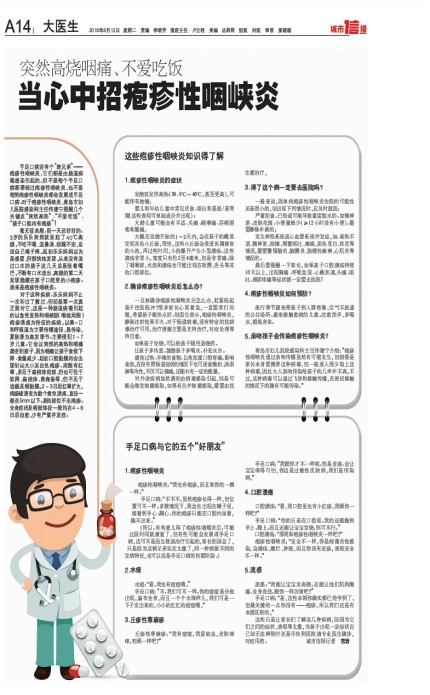 城市信報(bào):當(dāng)心中招皰疹性咽頰炎