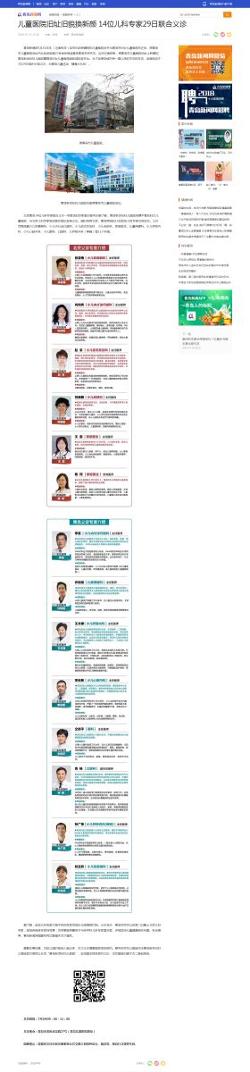 青島新聞網(wǎng):兒童醫(yī)院舊址舊貌換新顏 14位兒科專家29日聯(lián)合義診