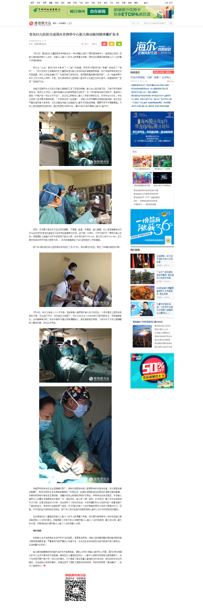 鳳凰網(wǎng):青島婦兒醫(yī)院完成國內(nèi)首例單中心胎兒肺動(dòng)脈閉鎖球囊擴(kuò)張術(shù)
