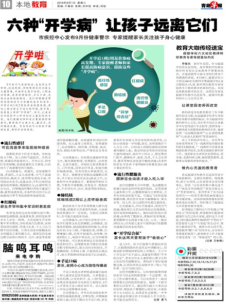 青島早報:六種“開學病”讓孩子遠離它們