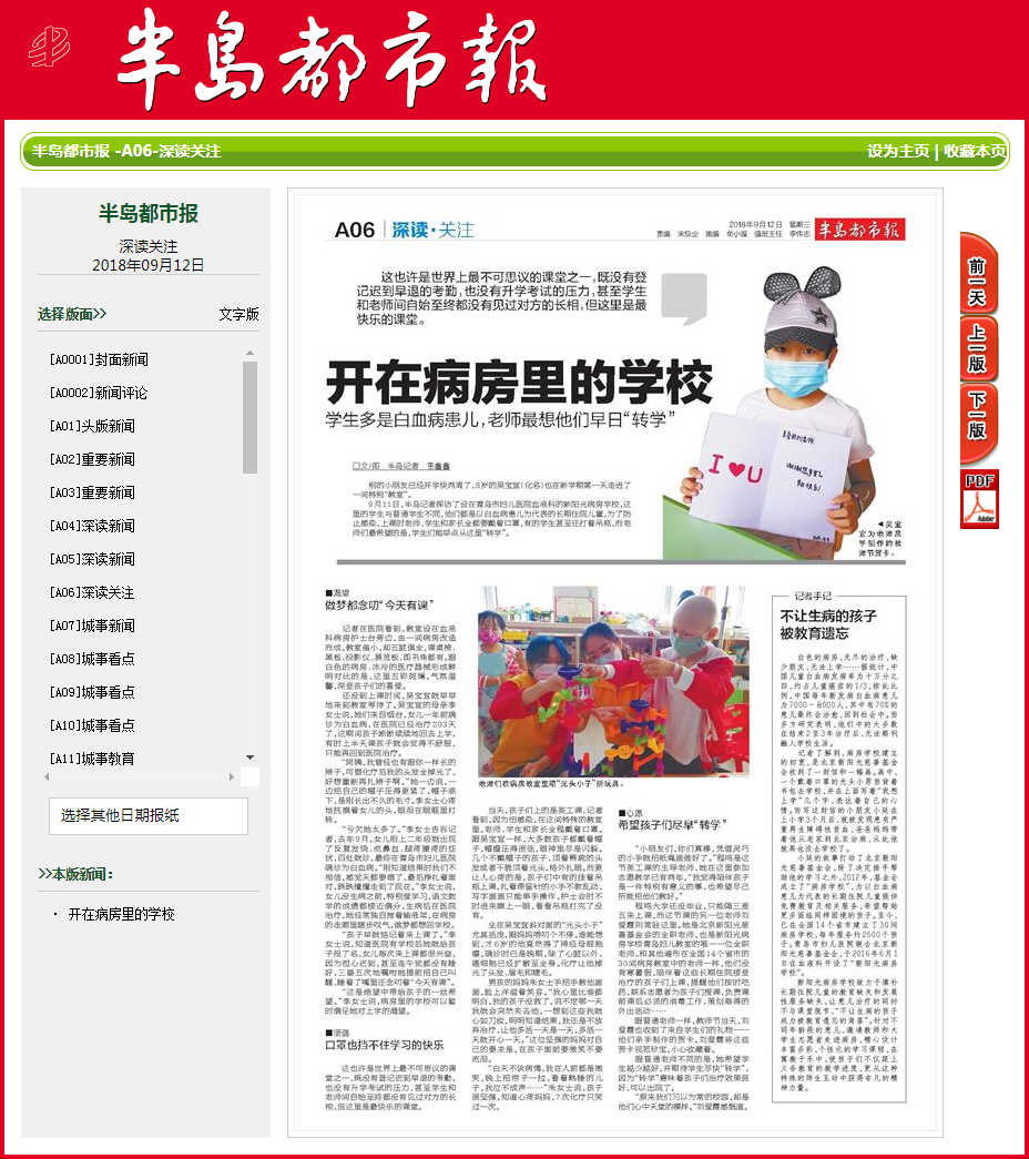 半島都市報(bào):開(kāi)在病房里的學(xué)校