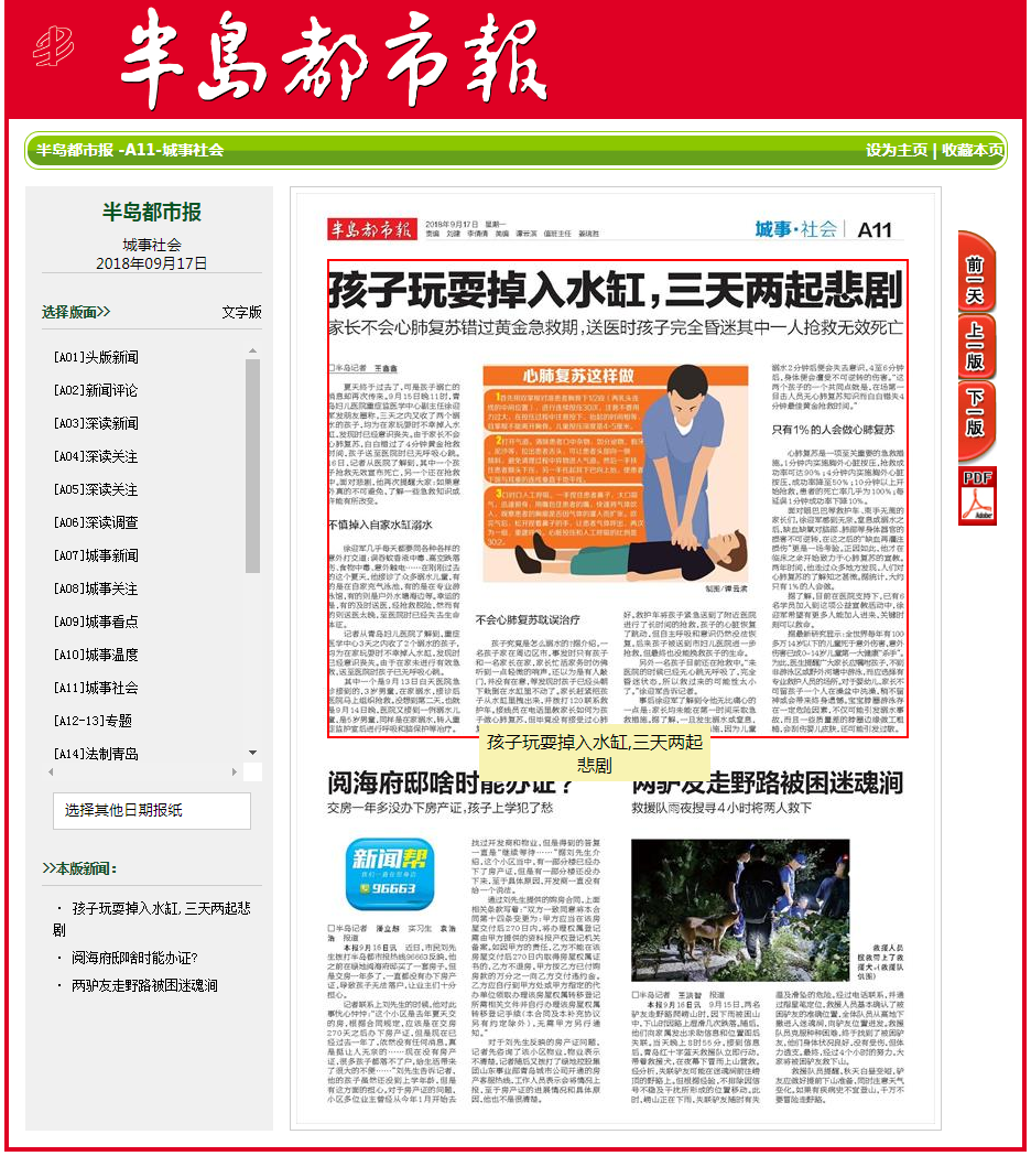 半島都市報:兩天里,倆孩子家中溺水