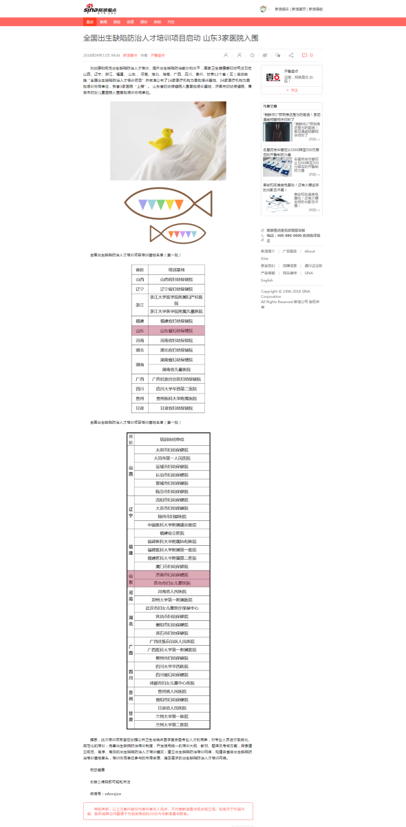 新浪看點:全國出生缺陷防治人才培訓(xùn)項目啟動 山東3家醫(yī)院入圍