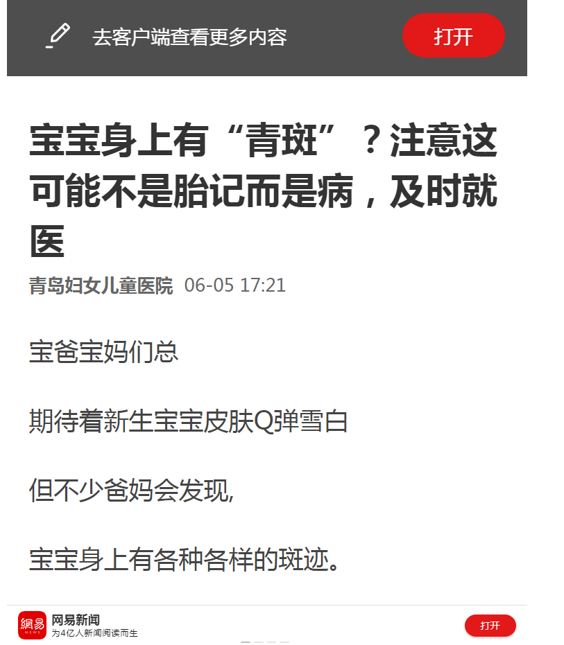 網(wǎng)易新聞:寶寶身上有“青斑”?注意這可能不是胎記而是病,及時就醫(yī)