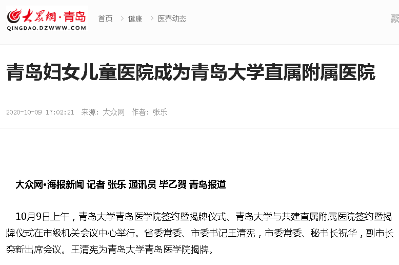 大眾網(wǎng)·青島:青島婦女兒童醫(yī)院成為青島大學(xué)直屬附屬醫(yī)院