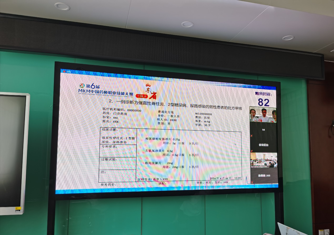 本次大賽分為線上選拔賽和山東省決賽兩部分。我院藥學(xué)部選派了藥劑科曲素欣主任作為領(lǐng)隊(duì),由藥劑科程玉進(jìn)、欒曾惠和靜配中心張福東三名一線藥師組成代表隊(duì)參賽。
