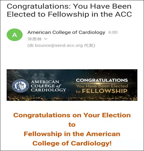 我院泮思林教授當(dāng)選美國心臟病學(xué)會(huì)委員(FACC)