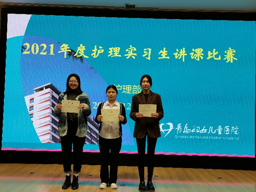 臨床實習是護理實習生由學校向臨床過渡的關鍵期,良好的實習氛圍和高水平的帶教能力尤為重要。為提升臨床帶教質量,激發(fā)學生學習積極性,促進其綜合能力的培養(yǎng)。2021年12月23日,青島市婦女兒童醫(yī)院護理部舉行護理實習生小講課競賽,本次競賽共有來自青島第二衛(wèi)校、濱海學院、濰坊職業(yè)學院、山東協(xié)和學院的13名同學參加。經過激烈角逐,最終評選出一等獎1名,二等獎2名,三等獎3名,優(yōu)秀獎若干名。賽后,各位評委老師對參賽選手給予高度評價,從授課內容、語言表述、PPT質量、臺風展示等多各方面進行精彩點評,強調實習生要注重理論知識和臨床實踐的有效結合。