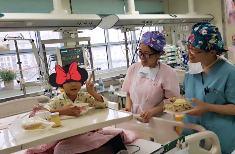 當班護士看到孩子可憐的樣子,便將此事告訴了護士長。護士長和心臟中心主任曹倩就一起安慰傷心的小可,答應(yīng)可以破例讓媽媽進監(jiān)護室床旁看她,并拉勾要她破涕而笑高興著見媽媽。曹主任允諾,如果小可不再哭泣、高高興興地見媽媽,便給她做蛋炒飯吃。懂事的小可果真忍住了淚花,掛著滿臉的淚水笑了。