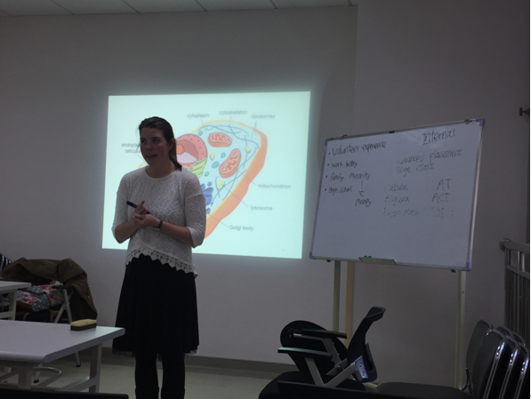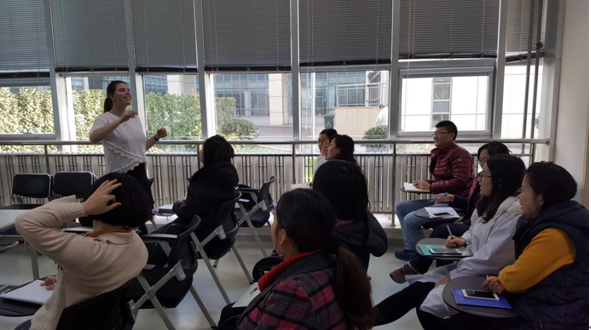 Kassie是一個來自美國的熱情姑娘,第一堂課,她通過PPT向大家介紹自己,并展示了美國文化和美國的教育理念等內容,引起學員們的濃厚興趣,大家爭相用英語提問,與Kassie交流,整個課堂氣氛非?;钴S。