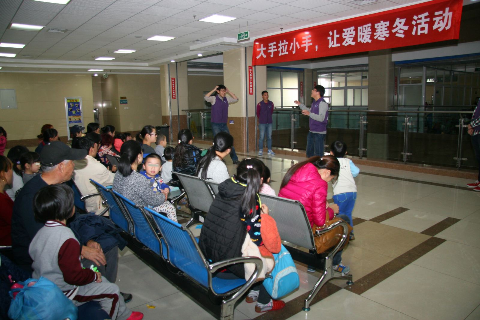 一是舉辦“大手拉小手 讓愛(ài)暖寒冬”活動(dòng)。組織醫(yī)護(hù)志愿者與青島大學(xué)醫(yī)學(xué)院學(xué)生志愿者和心理科、康復(fù)科的患兒們聯(lián)歡。通過(guò)現(xiàn)場(chǎng)游戲、節(jié)目表演等形式與孩子們進(jìn)行互動(dòng),并為孩子們送上愛(ài)心小禮物。