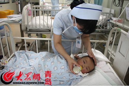 記者吃完午飯回來,發(fā)現(xiàn)PICU里的醫(yī)生們依然圍在一起給孩子做“腰穿”,腰穿術(shù)是為了檢查孩子是否患有腦炎。幼小的孩子不似大人,身體上哪里不舒服會用言語來表達(dá),但是小孩不會表達(dá),需要醫(yī)生們一項(xiàng)一項(xiàng)繁瑣地檢查來確診孩子的病情。護(hù)士忙著給孩子喂奶,護(hù)士一手托著孩子的頭,生怕孩子嗆著,一手拿著奶瓶,時(shí)不時(shí)的試試溫度,生怕孩子燙著。此刻,病床里的孩子,像是置身搖籃里的嬰兒,貪婪的享受著媽媽母乳般的滋養(yǎng),臉上露出一抹滿足的微笑。