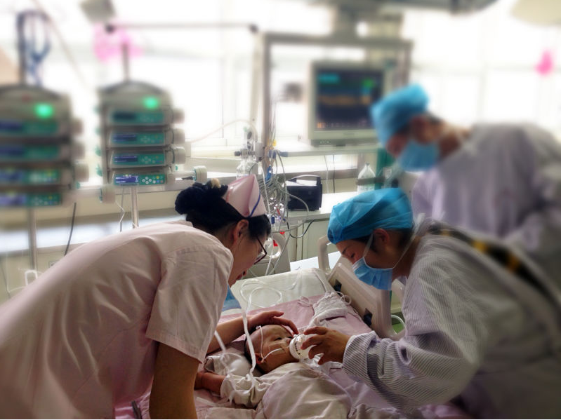 除夕的心臟中心不同往日,大大的燈籠懸掛高空,紅紅的窗花芬芳誘人。下午4點(diǎn)探視時(shí)間到了,重癥監(jiān)護(hù)室(CICU)“滴滴答答”的儀器聲替代鞭炮聲奏響著新春進(jìn)行曲,奏響著人性化與醫(yī)患情緊密交織的高潮曲,奏響著家屬驚訝驚喜與感激感慨的澎湃曲。為了將患兒的身心健康與父母的心理疏導(dǎo)融為一體,為了讓心情憂(yōu)慮的父母也能感受春節(jié)的家庭團(tuán)聚,在不影響臨床治療的前提下,平時(shí)單人隔窗十分鐘的走廊探視被特批為父母雙人CCU半小時(shí)的床旁親密接觸:護(hù)士把奶瓶遞給媽媽?zhuān)饭艿膶殞殗L上了最香的年夜飯;護(hù)士把小手與小腳丫安放父母手心,鎮(zhèn)靜中的寶寶被心靈感應(yīng)“電”笑了……突如其來(lái)的“新春大禮包”讓患兒父母喜極而泣,往日的冷漠猜疑一掃而光。多換位多溝通多理解,醫(yī)患本可一家親的。