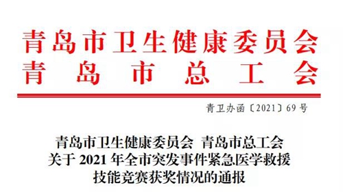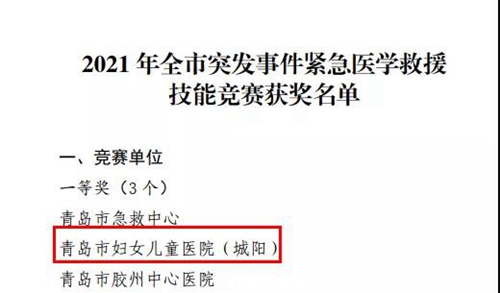 青島婦兒醫(yī)院城陽院區(qū)榮獲2021年全市突發(fā)事件緊急醫(yī)學救援技能大賽團體一等獎