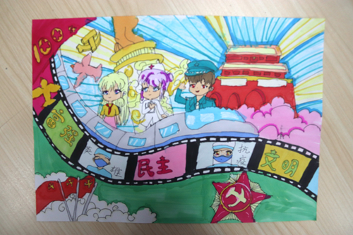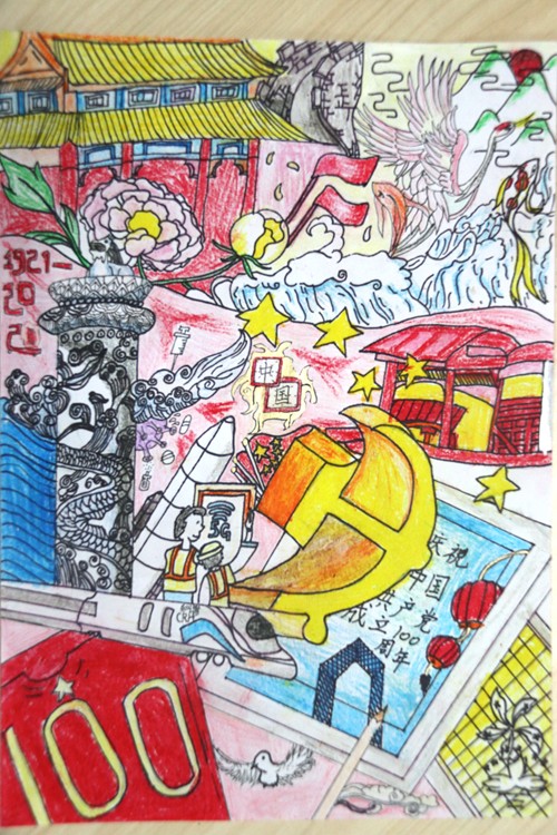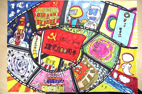 PICU職工顏丙鳳的孩子吳星涵,所作繪畫(huà)《百年砥礪奮進(jìn),強(qiáng)國(guó)堅(jiān)守初心》