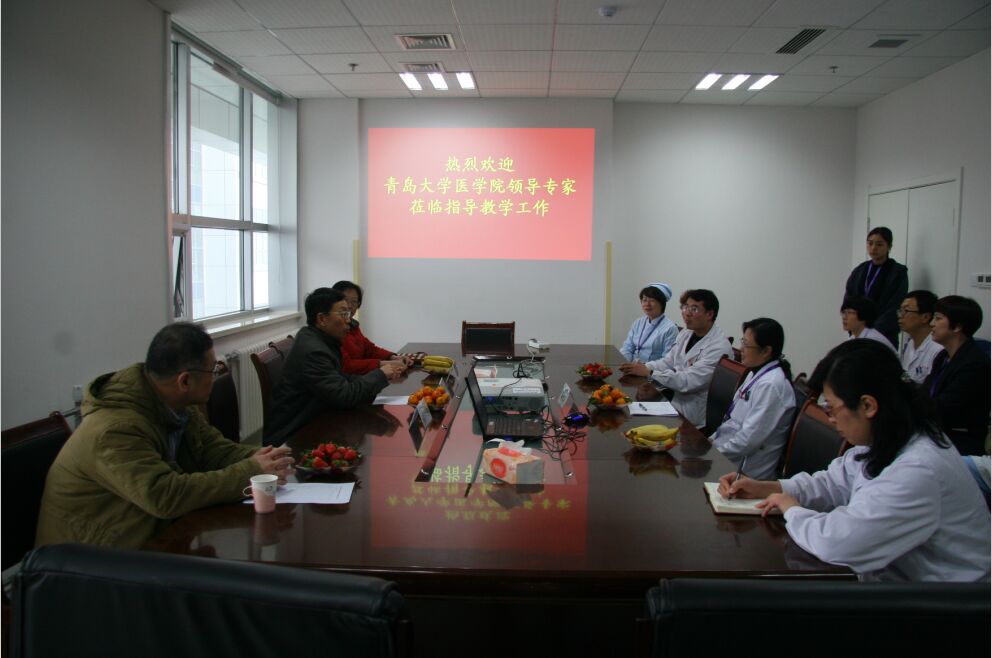 2015年12月23日下午,青島大學(xué)醫(yī)學(xué)院副院長劉成玉、臨教科主任馬桂馨和督學(xué)楊魯民三位專家一行蒞臨我院進(jìn)行2015年度教學(xué)檢查工作。副院長、兒科學(xué)教研室主任單若冰,科教科主任泮思林、督學(xué)王貞以及各教研室主任、教學(xué)秘書、教學(xué)干事等參加了教學(xué)檢查工作會議并聽取了檢查反饋。